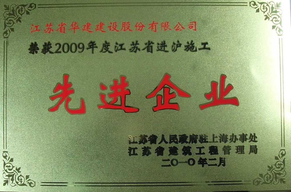 公司七獲“江蘇省進滬施工先進企業”稱號 時間:2010-03-29 6312 3月10日,在江蘇省政府駐滬辦、江蘇省建管局召開的2009年度江蘇進滬施工總結表彰暨迎世博動員大會上,江蘇華建被表彰為“江蘇省進滬施工先進企業”,這已是第七次獲次殊榮;表彰會上, 上海洛克外灘源總承包項目部、中船臨港二期加工綜合樓項目部被評為優秀項目部,另有3人被評為優秀項目經理,各有1人被評為安全管理先進個人、質量管理先進個人、經營管理先進個人、財務管理先進個人,有2人被評為綠色施工管理先進個人。