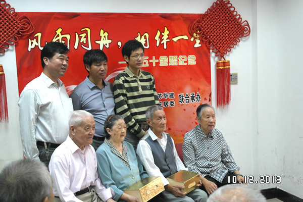 公司與居會委聯合舉辦“五十金婚紀念”活動 時間:2013-10-12 6141 10月12日,中國傳統節日“重陽節”前夕,上海分公司與承建的洛克外灘源項目所在地的虎丘居委會聯合舉辦“五十金婚紀念”活動,大力弘揚中華民族尊老愛老的優良傳統美德,也是公司與地方政府開展聯建共建活動的重要成果。上海分公司總經理助理、工會副主席陳德權還代表公司向居委會轄區內60對金婚夫婦贈送了由江西景德鎮特制的象征“幸福”、“長壽”的茶杯。