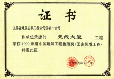 深圳無線大廈 時間:2008-12-29 11496 無線大廈(現名國通大廈)位于福田區新洲,建筑面積73069M2,高度201.5M,地下室2層,地上43層,是一座高智能化的電信寫字樓,結構設計為鋼筋砼框架一筒體結構,8-32層為無粘結預應力樓板砼,工程總造價6億元。工程于1995年6月開工,1997年12月竣工,施工中主要應用了無粘結預應力砼、高強泵送砼、粗直徑鋼筋連接、外墻干掛花崗巖等新技術。榮獲深圳市、廣東省、江蘇省的優質樣板工程,“江蘇省新技術應用示范工程”、江蘇省“揚子杯”獎和99年度國家“魯班獎”。
