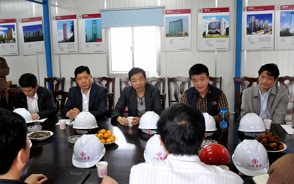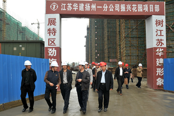 陸金龍董事長一行檢查振興花園安全生產工作 時間:2010-05-07 5688 5月5日,陸金龍董事長一行赴公司在揚首個土建項目振興花園檢查指導安全生產工作。在聽取了項目部相關同志對安全生產情況的具體介紹后,陸總指出,安全生產大于天,各級管理人員要在思想上高度重視,千萬不能有松懈麻痹思想,要對安全工作加大投入,在組織上層層落實,積極開展各類安全培訓教育,切實把安全工作做到位。隨后,陸總一行人到施工現場參觀檢查,對各項工作表示滿意。公司副總經理吳士茂、揚州一分公司李幼杰、王志明等領導陪同參加。