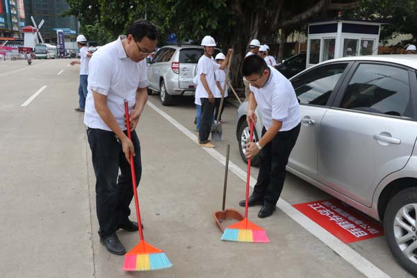 隨后,會場舉辦“我愛海口,力爭雙創”授旗儀式,并組織志愿者“自掃門前雪”,手拿掃把、簸箕等工具,將所屬衛生轄區打掃得干干凈凈,以實際行動來踐行“雙創”工作。