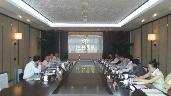 海建集團(tuán)總裁吳亞春一行赴華建總部考察交流 時(shí)間:2015-10-19 4341 10月18日上午,海南省建設(shè)集團(tuán)有限公司總裁吳亞春一行赴公司總部考察交流,公司常務(wù)副總程杰、海南公司副總高家馴及相關(guān)部門負(fù)責(zé)人參加接待交流。交流會(huì)上,程總介紹了公司的發(fā)展歷程和基本情況,雙方就蘇瓊兩地建筑施工企業(yè)發(fā)展、用人機(jī)制、分配機(jī)制和管理理念等方面分享各自的經(jīng)驗(yàn)與不足,并就尋求深度合作交流了意向,整個(gè)交流會(huì)氣氛活躍,雙方都感到受益匪淺。