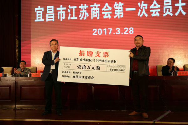 會(huì)議選舉產(chǎn)生了商會(huì)第一屆領(lǐng)導(dǎo)班子,公司副總經(jīng)理陸俊當(dāng)選首任會(huì)長(zhǎng),通過(guò)公司董事長(zhǎng)王宏為宜昌市江蘇商會(huì)第一屆名譽(yù)會(huì)長(zhǎng)。為幫助貧困村脫貧攻堅(jiān),宜昌市江蘇商會(huì)現(xiàn)場(chǎng)向夷陵區(qū)三斗坪鎮(zhèn)柏果淌村捐贈(zèng)幫扶資金10萬(wàn)元。