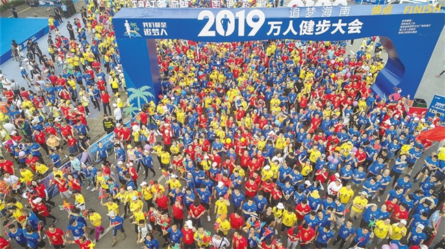 5月1日,為展現海南自由貿易試驗區建設一年來所取得的新成績和海南人民的新氣象、新面貌,由海南省總工會、海南省旅游和文化廣電體育廳、海口市人民政府和海南日報報業集團聯合主辦的2019追夢海南萬人健步大會活動在海口舉行。