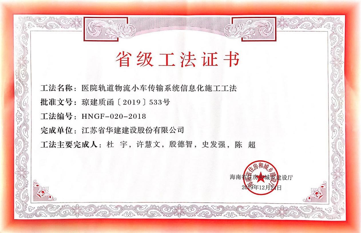 海南分公司新增1項省省級工法 時間:2020-01-10 3856 2019年12月24日,海南省住房和城鄉(xiāng)建設(shè)廳公布了2018年度海南省省級工法評審結(jié)果,我司《醫(yī)院軌道物流小車傳輸系統(tǒng)信息化施工工法》成功入選。