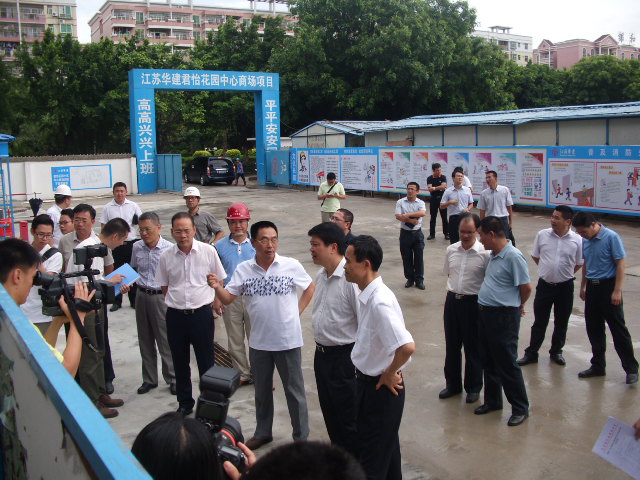 2015623日下午,廣東省陽江市市委書記魏宏廣、市長丘志勇及市直有關部門主要負責人視察我公司承建的君怡花園中心商場項目,建設方君創房產董事長方興德、江蘇華建陽江分公司總經理盧達現場陪同。魏書記在了解項目的工期進展、安全文明施工及質量等詳細情況后表示:本項目作為陽江市標志性的城市綜合體項目,一定要高標準建設、高標準定位。城市綜合體建設項目是城市擴容提質的重點項目,各方要堅定信心,克服困難,加快推進項目建設,力爭早日建成,為市民提供新的城市生活空間。