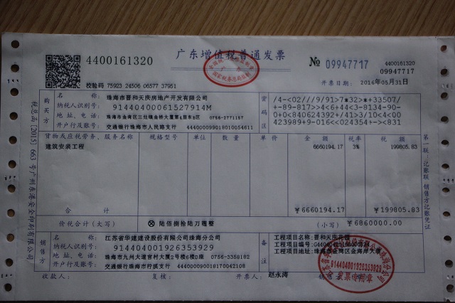珠海區域公司第一張增值稅發票成功開具 時間:2016-06-01 3036 建筑行業“營改增”自5月1日起正式實施,公司領導高度重視“營改增”工作,先后完成了稅控設備軟硬件更新、數次的“營改增”知識培訓及交流會,并在主管國稅局完成了有關一般納稅人認定、增值稅發票額度調整、公司老項目備案等工作。 5月31日,財務處成功開具了第一張增值稅普通發票,此票為公司第五項目部承擔施工任務的晉和天慶花園總承包工程使用,走出了公司“營改增”工作的堅實一步。