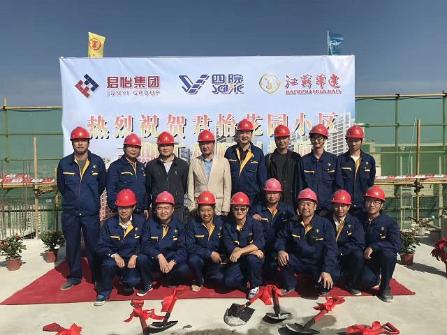 2016127日,第項目部承擔施工任務的陽江君怡花園三期項目提前45天實現主體結構全面封頂。陽江市君創房地產開發有限公司總經理曹恒和,機械工業第四設計研究院項目經理施宇紅,江蘇華建珠海區域公司總經理繆國樞、副總經理盧達、副總經理兼總工程師周學軍等參加儀式。