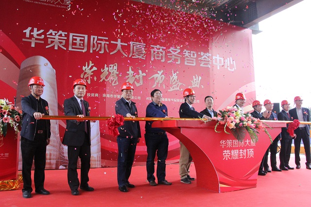 2017年1月9日,第八項(xiàng)目部承擔(dān)施工任務(wù)的華策國(guó)際大廈項(xiàng)目舉行主體結(jié)構(gòu)封頂儀式。橫琴新區(qū)黨委副書記葉真、橫琴新區(qū)建設(shè)環(huán)保局局長(zhǎng)劉晨光,華策集團(tuán)董事局主席楊峰、副主席楊智雄、總裁余道群,江蘇華建副董事長(zhǎng)、總經(jīng)理宗有農(nóng)、珠海公司總經(jīng)理繆國(guó)樞、深圳公司常務(wù)副總吳碧橋、深圳公司副總經(jīng)理蔣超,以及來(lái)自華策集團(tuán)、設(shè)計(jì)單位、參建單位、監(jiān)理單位和珠海區(qū)域公司相關(guān)人員共200余人出席儀式。華策國(guó)際大廈整體分為東塔和西塔兩部分,西塔已于2016年11月8日封頂,隨著東塔的順利封頂,華策國(guó)際大廈全面封頂,并將于2017年部分投入使用,2018年底全部投入使用。