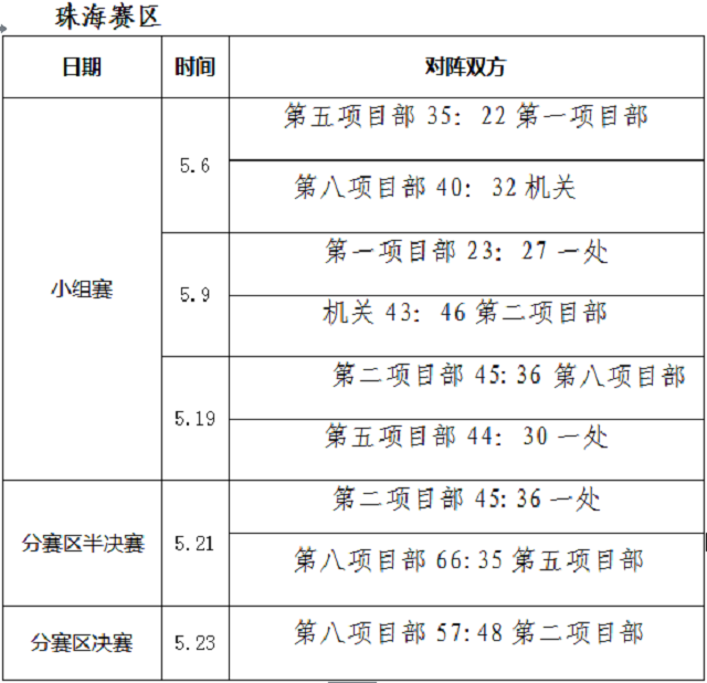 總決賽在珠海賽區冠軍第八項目部與重慶賽區冠軍第二工程處之間展開。