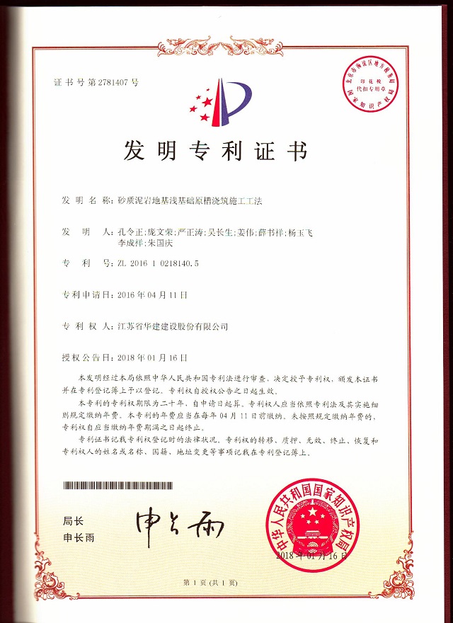 近日,從國家知識產(chǎn)權(quán)局傳來好消息,重慶分公司申報的技術(shù)成果《砂質(zhì)泥巖地基淺基礎(chǔ)原槽澆筑施工工法》獲得國家發(fā)明專利授權(quán)。該發(fā)明專利重慶分公司獲得的首個國家發(fā)明專利至此,珠海區(qū)域公司國家發(fā)明專利已達兩項。