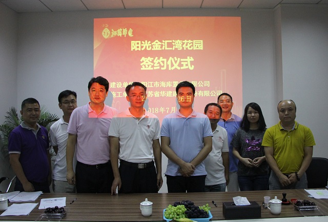 公司新簽1項目,造價1.66億元 時間:2018-07-27 4793 7月26日下午,陽光金匯灣花園施工總承包合同在陽江市海庫置業(yè)有限公司會議室成功簽約,項目開發(fā)商陽江市海庫置業(yè)有限公司總經(jīng)理黃立衡,珠海區(qū)域公司總經(jīng)理呂方達出席簽約儀式。 該項目位于陽江市江城區(qū),總建筑面積約10.5萬平米,由13棟商住樓組成,造價約1.66億元,由第一項目部施工。
