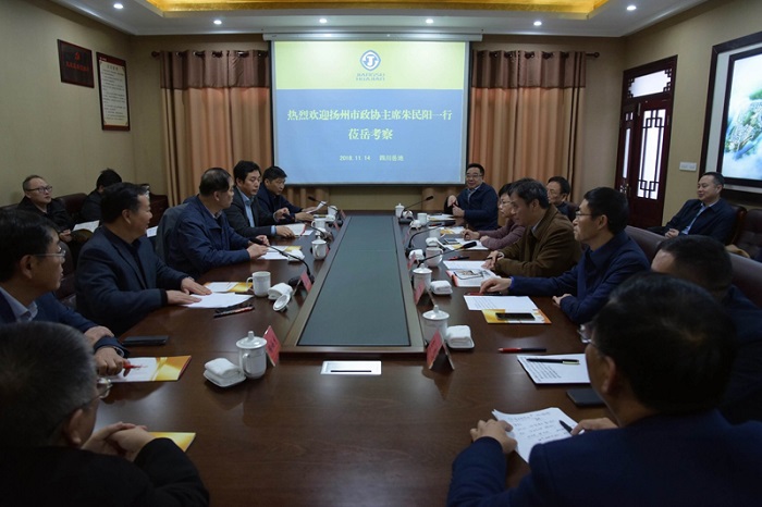 11月14日,揚州市政協主席朱民陽、副市長劉禹同、市政協副主席王駿等一行在廣安考察期間,專程蒞臨岳池分公司視察指導。廣安市委常委、副市長陽勇,岳池縣委書記鄭鵬程,縣委常委、副縣長劉俊和江蘇華建常務副總經理程杰、副總經濟師、珠海區域公司常務副總兼重慶分公司總經理嚴正濤等陪同考察。