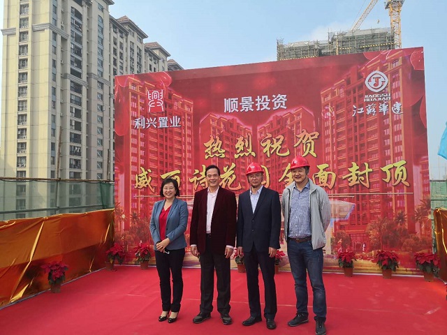2019年1月14日,第一項(xiàng)目部承擔(dān)施工任務(wù)的陽江威麗詩花園2期項(xiàng)目提前60天實(shí)現(xiàn)主體結(jié)構(gòu)全面封頂。珠海利騰集團(tuán)董事長黃金紅、總經(jīng)理譚劍云,江蘇華建珠海區(qū)域公司總經(jīng)理呂方達(dá)等參加封頂儀式。