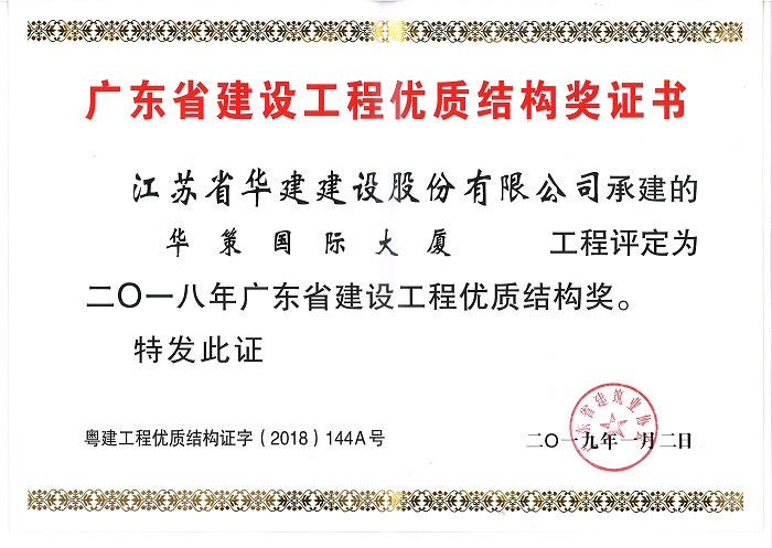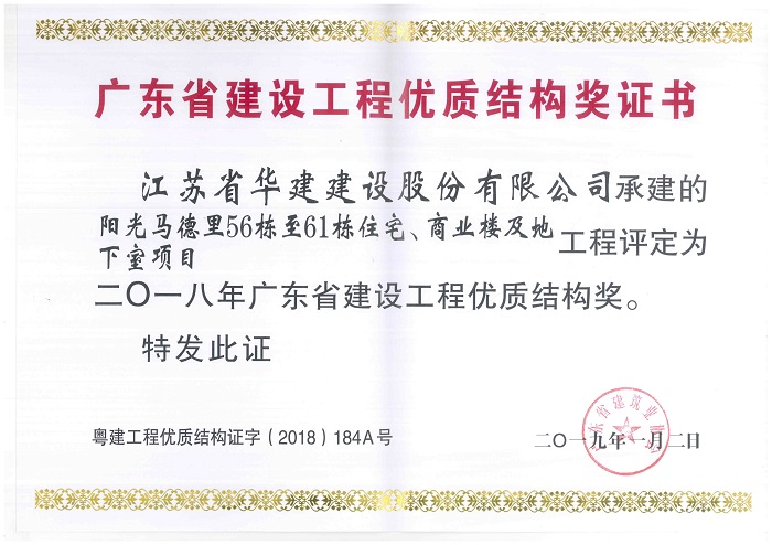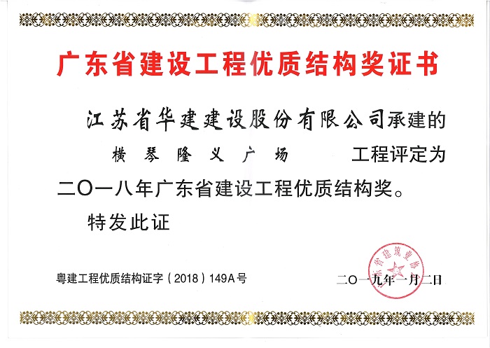 近日,廣東省建筑業(yè)協(xié)會、廣東省建筑安全協(xié)會分別發(fā)文表彰了一批優(yōu)質結構工程、綠色施工示范工程和安全文明工地,公司3個項目榮列榜單。其中,陽光馬德里、橫琴隆義廣場、華策國際大廈均被表彰為二〇一八年廣東省建設工程優(yōu)質結構獎,華策國際大廈被授予廣東省建筑業(yè)綠色施工示范工程稱號,橫琴隆義廣場被評為2017年廣東省房屋市政工程安全生產文明施工示范工地。