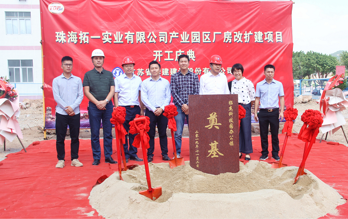 珠海拓一產業園區廠房改擴建項目舉行開工儀式 時間:2019-11-03 2671 11月2日,公司承建的珠海拓一實業有限公司產業園區廠房改擴建項目舉行隆重的開工儀式。 珠海拓一實業有限公司產業園區廠房改擴建項目,擴建項目建筑總面積為19088.9平方米,其中新一號廠房建筑面積為19050.68平方米(地上建筑面積為17019.75平方米,地下建筑面積為2030.93平方米);門衛室建筑面積為38.22平方米,工程暫定價約4600萬元,改建項目正在洽談中。