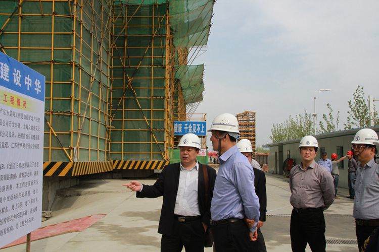 410下午,揚(yáng)州市副市長聞道才在揚(yáng)州市建設(shè)局成自勇副局長、唐朝文處長和廣陵區(qū)、邗江區(qū)、江都區(qū)副區(qū)長等的陪同下,赴我司合肥東方藍(lán)海BC組團(tuán)三標(biāo)段項(xiàng)目參觀考察。公司副總經(jīng)理陸俊、公司副總經(jīng)理、惠州區(qū)域公司總經(jīng)理華恒榮向來訪領(lǐng)導(dǎo)簡要介紹了江蘇華建在安徽市場的發(fā)展戰(zhàn)略及東方藍(lán)海BC組團(tuán)三標(biāo)段項(xiàng)目的施工情況。