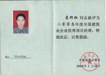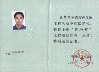 他努力踐行科學(xué)發(fā)展觀,狠抓施工技術(shù)管理,擔(dān)任項(xiàng)目經(jīng)理多年,負(fù)責(zé)施工的工程屢創(chuàng)佳績(jī),屢獲殊榮,他負(fù)責(zé)施工的項(xiàng)目達(dá)35項(xiàng)之多,建筑面積97萬m2,其中18層以上31幢。工程質(zhì)量幢幢優(yōu)良,8項(xiàng)工程獲江蘇省優(yōu),1項(xiàng)獲廣東省優(yōu)工程,6項(xiàng)獲深圳市優(yōu),兩項(xiàng)獲深圳市最高質(zhì)量榮譽(yù)“金牛獎(jiǎng)”,兩項(xiàng)問鼎中國(guó)建設(shè)工程最高質(zhì)量榮譽(yù)魯班獎(jiǎng)。袁邦權(quán)項(xiàng)目部業(yè)成為業(yè)內(nèi)有影響的锃亮品牌,先后被授予公司雙文明先進(jìn)集體、公司思想政治工作先進(jìn)單位,“江蘇省青年文明號(hào)”、“全國(guó)青年文明號(hào)”等光榮稱號(hào)。