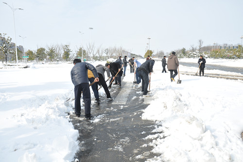 公司總部組織員工上路清掃積雪 時間:2013-02-19 4373 2月18日至19日凌晨,揚州出現低溫降雪災害天氣,降下了多年罕見的一場大雪,壓垮樹枝和部分房屋設施,并造成道路交通不便。19日清晨,公司響應市政府號召,組織20余名員工上路清掃積雪,公司領導吳士茂、錢啟明親自參加,與大家共同會戰2個多小時,完成了清掃任務。 厚重的積雪壓垮樹枝