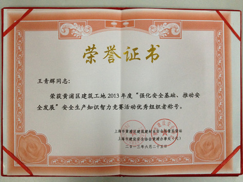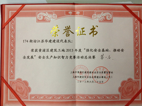 625日下午,上海公司外灘源項目部參加了由上海市黃浦區建設和交通委員會主辦的黃浦區建筑工地2013年度“強化安全基礎、推動安全發展”安全生產知識智力競賽并奪得第一名。