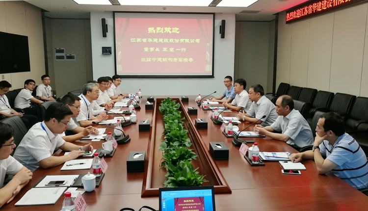 在交流會上,中建鋼構王宏董事長就當下建筑市場變化、產品變化、質量變化、生產方式等進行了分析,介紹了中建鋼構以“鋼”為核心構建投資、研發、設計、建造、運營于一體的商業模式,并期待與江蘇華建強強聯合,在區域、產品、專業上開展共贏合作。公司王宏董事長也對江蘇華建的發展歷史、區域市場、PPP項目運作、企業未來發展等情況進行了介紹。他說,通過參觀中建鋼構博物館,進一步加深了對鋼結構發展空間、速度和前景的了解,對中建鋼構的非凡發展業績表示欽佩贊賞;江蘇華建與中建鋼構都是國有企業,都按照現代市場經濟進行運作,也肩負著社會責任,雙方相識、相知、相交,可以多形式、多平臺地開展深入合作,共同發展,互利共贏。